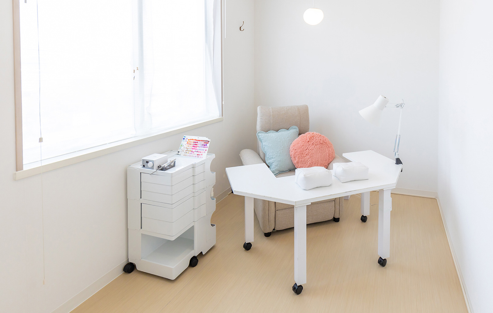 個室のプライベート空間のため、他のお客様の目を気にすることなく過ごせます。お客様お一人お一人との関わり合いを大切にさせていただいておりますので、気兼ねなく爪のお悩みを相談していただけます。